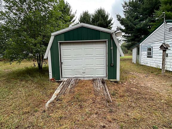 Peaceful 1-acre property, perfect for those looking for a fixer-upper project. One bedroom cabin with a simple layout that includes a living area, kitchen, and bedroom. This space offers a great canvas for your renovation ideas. The property also includes a single, metal garage with garage door & a passage door. Sold "AS IS". Beautiful, mature white pines in yard. No appliances.