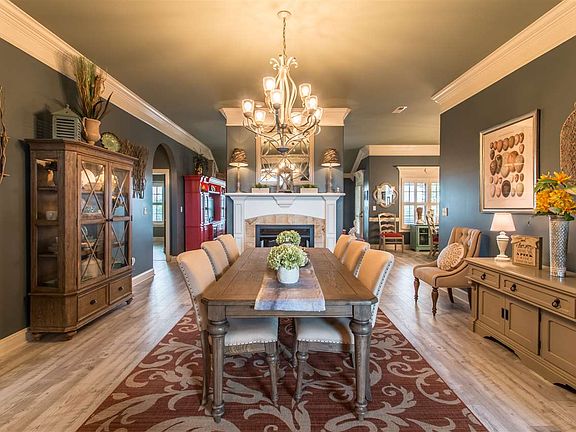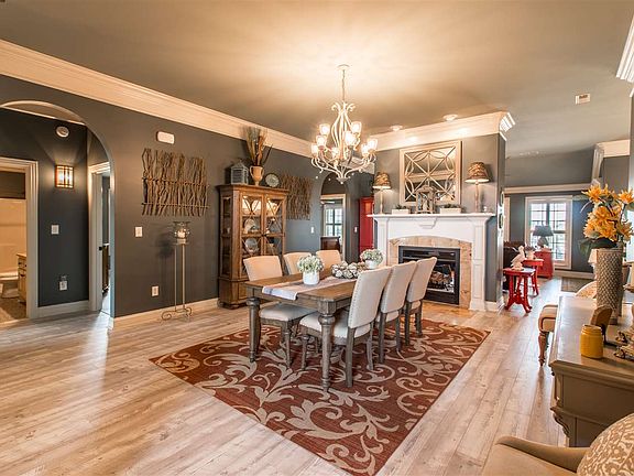 - DINING ROOM DESC: 10? + Ceiling, Smooth Ceiling, Laminate Floor, Window Cov, Crown Mold, Fireplace