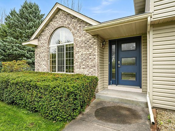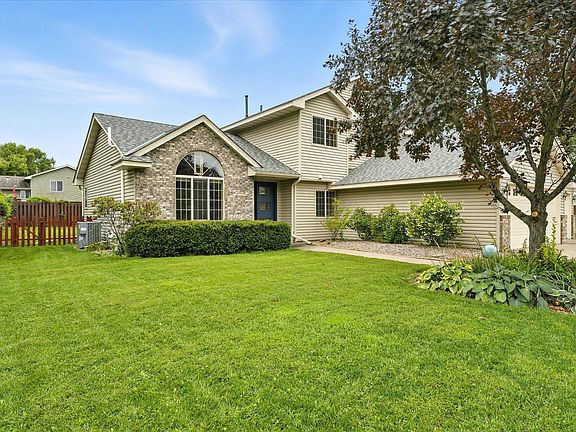 Welcome to this well-maintained home in Elk River, featuring newer carpet throughout. The vaulted front living room is filled with natural light from a large arched window, creating a bright and welcoming entry. The adjoining kitchen and family room provide a functional layout, with the family room highlighted by a cozy gas fireplace accented with quartz surround, wood mantel, and a stylish shiplap feature wall. From here, step out to a spacious patio with a pergola, perfect for outdoor dining and relaxation.