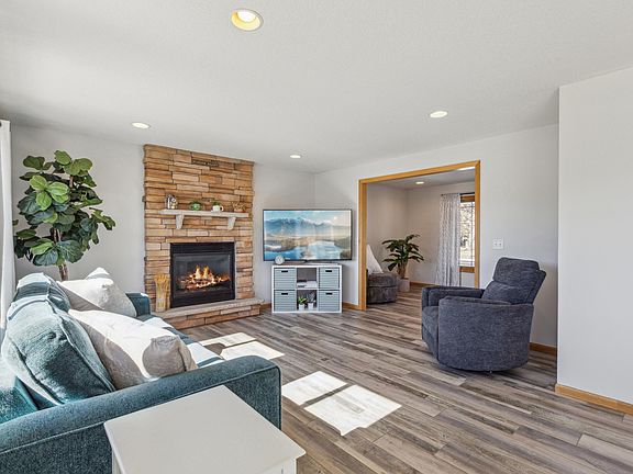 Welcome to this stunning 4 bed, 4 bath home in Elk River nestled at the end of a quiet cul-de-sac! As you enter the home you are greeted with high ceilings, neutral finishes, and upgraded luxury vinyl tile. The main level features a sun filled living room with a cozy gas fireplace that seamlessly opens to the informal dining room and kitchen which offers ample cabinet space, stainless appliances, granite countertops, center island and updated lighting. The main level also features a front sitting area and a formal dining room. Plus, there's a convenient half bath—perfect for guests! Enjoy 3 beds on one level, with a spacious primary bedroom complete with a walk-in closet, and a private bath with corner tub and walk-in shower. Need more room? The bonus room above the garage provides flexibility for an additional bedroom, another living area, or home office! The finished basement includes a bedroom, bathroom and kitchenette/bar, ideal for entertaining! Outside, the large front yard with mature trees and a charming front porch creates stunning curb appeal, while the backyard offers a low maintenance composite deck, a hot tub, plus a separate fenced in area - great for pets! You’ll love the storage space in the 3 stall garage, plus bonus storage space in the 10x12 two story shed! This home is adjacent to an open prairie to the west, offering privacy and beautiful views. This custom home neighborhood is just minutes from main street, a golf course, and local eateries, with schools and easy access to highways. Recent updates include a new AC, furnace, and humidifier, luxury vinyl tile on the main level, and fresh paint and carpet! Don’t miss your chance to own this exquisite home!