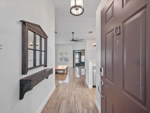 2 bedroom, 2 bath townhome located in the heart of Wellington, 1.5 miles from the Winter Equestrian Festival. The perfect place to call home year round or for season. 1 story unit with a new roof installed in 2023, newly installed wood look tile, renovated kitchen, open living spaces and lovely outdoor terrace with turf for minimal maintenance. Storm protection includes accordion hurricane shutters throughout. 1 car garage with ample parking spots. Don't miss the opportunity of this rare 2 bedroom in Wellington Place!