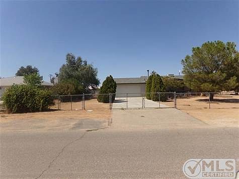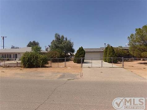 Large Corner Lot. 31000 Sq.Ft. Fully fenced with 2 drive thru gates. Bring all the toys! This well maintained 2bd 1 ba home features wood burning stove in living room, tile floors in kitchen, blinds throughout, ceiling fans in bedrooms, covered patio, desert landscaping front and back. PRICED TO SELL!!!! Open House Sat. 9/21/13 from 1-4. Brokered And Advertised By: Keller Williams Realty VVMC Listing Agent: Kathleen Y. Becerra