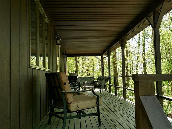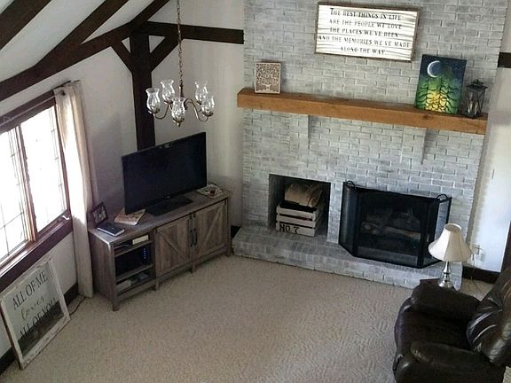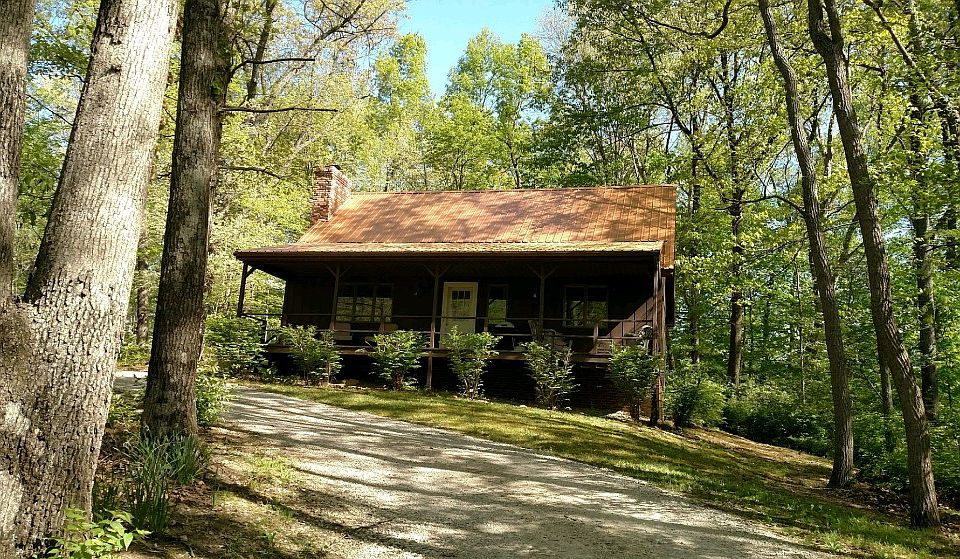 CABIN IN THE WOODS, private location for this 2 bedroom, 1 bath home with extra shower in utility room. Large gas fireplace is focal point in the great room which opens into the kitchen. Loft hosts second bedroom. Home has an extra cooling feature with an attic fan. Front porch spans the front of the home for sitting and relaxing and enjoying the wooded setting and wildlife. A detached garage and nice back yard rounds out the .82 acre property. Newer roof, heat pump and possession at closing.