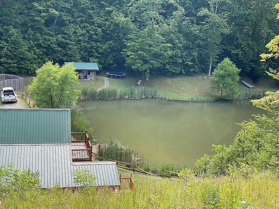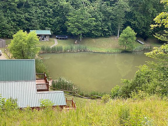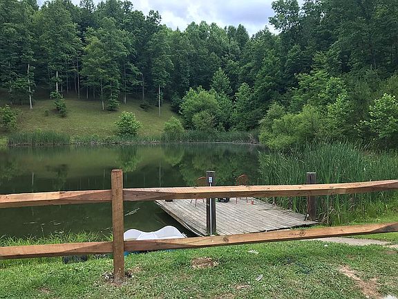 Four bedroom, two bath 1.5 story secluded log home on slightly over 2 acres of land. Oversized covered porch, 2 decks, dock on stocked pond, picnic shelter with custom stone grill and water access, large two car detached garage with full bath and separate tool room, large building, above ground pool with deck. House has been freshly stained since photos were taken. Serious inquires only. Absolutely no land contracts.
