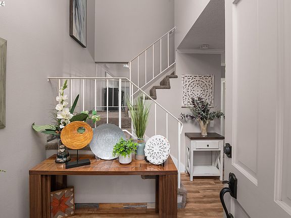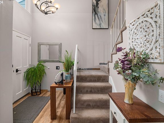 New Price! Welcome to the desirable Red Fox Hills Townhomes community, a perfect blend of convenience and lifestyle. The main level of this 2-story home has all your everyday needs covered: a comfortable living room with a wood-burning fireplace, a half bathroom with epoxy counters, a generous dining room with a glass-paneled door to the backyard, and a light filled kitchen with a double oven range, built-in microwave, and ample storage in the adjacent laundry room. New laminate floors flow from the entry through the dining room and kitchen. Upstairs, you will find three inviting bedrooms, each with vaulted ceilings. The primary bedroom with French doors features access to the full bathroom. Two additional light and bright bedrooms offer versatility for office or play. Enjoy a private, fenced backyard complete with new hassle-free astroturf, a newly built deck, and irrigated garden beds. The semi-detached 2-car garage connects directly to this outdoor space, offering convenient access and extra storage just steps from your home. Community amenities include a seasonal pool, a newly refreshed hot tub, community garden and reservable clubhouse—all of which are surrounded by meticulously cared-for common areas and backs onto the scenic trails of Tryon Creek State Park. Located in Lake Oswego’s nationally recognized school district and a pleasant 15-minute walk to downtown, offering unique shops, local dining, and beautiful lakefront parks, this location cannot be beat. Start living your best Lake Oswego life today!