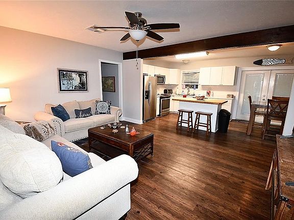 This Adorable 3BR/2BA cottage located just off Jackson St was completely remodeled in 2020 with new vinyl siding, insulated windows & doors, new electrical, plumbing, kitchen cabinets, counter tops, bathroom vanities & tub/shower, flooring, AC, fixtures, paint & landscaping, & is move in ready for you! It offers brand new carpet (2023) in the primary bedroom, a wonderful oversized walk-in closet, & main bathroom. The living & kitchen are open w/ a lg. island, & breakfast area, a pantry w/ wonderful windows to view both the front & back yards. Just outside the newly installed French doors it offers a covered deck to enjoy morning coffee or evening sunsets. It comes complete with all appliances, including the refrigerator, washer & dryer and the separate storage building in the backyard. Don't let this great home get away from you!