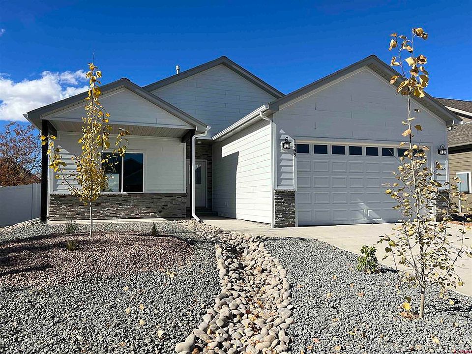 FOR ANY ACCEPTED CONTRACT ON OR BEFORE DECEMBER 1, 2022, THAT SUBSEQUENTLY CLOSES BY JANUARY 6, 2023, SELLER WILL REDUCE PRICE AN ADDITIONAL $10,000. New constructon with estimated completion November 10, 2022, with front landscaping (xericaped with plants and rock), backyard fence, and all appliances including washer and dryer! Ridgeline Homes' Rocky Mountain model with open concept living, dining and kitchen with vaulted ceiling and ceiling fan. Kitchen island, pantry, granite countertops and soft close doors and drawers. Sliding glass door off dining are to back patio. Master bedroom has vaulted ceiling, ceiling fan, walk in closet, double sink vanity in 3/4 master bath. Durable laminate flooring throughout with tiled baths. 9ft ceilings, hand-trailed textured walls, bullnose corners, LED lighting, forced-air gas heat, central air conditioning. Two-car garage with openers and keypad entry. SELLER WILL ALSO CREDIT $7000 TOWARDS BUYER CLOSING COSTS AND/OR INTEREST RATE BUY DOWN IF BUYER CLOSES USING ONE OF SELLER'S PREFERRED LENDERS, ACADEMY MORTGAGE MONTROSE OR SYNERGY ONE LENDING MONTROSE.