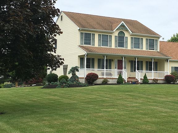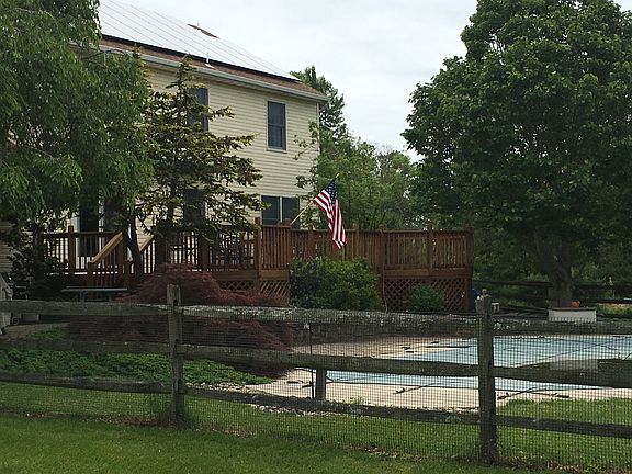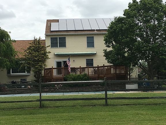 A great combination of country living with access to major roadways for an easy commute. This Fasolino built Colonial features 4 bedrooms, 2.5 baths with 2516 sq ft of living space. The first floor has a formal living room & dining room, office, country kitchen with attached breakfast room, sunken family room, half bath, and laundry room. The second floor has all 4 bedrooms including a master suite with bath and main full bath. The basement is full and partially finished, abundant storage and outside entry. Special features include an attached two-car garage plus a detached 36 x 30 detached garage with electric and HVAC system down an extra-wide driveway with room for multiple vehicles. Landscaped and private treed lot with rear deck overlooking 16 x 32 inground pool and pavers. Solar panels for extra savings. This home offers everything you could want.