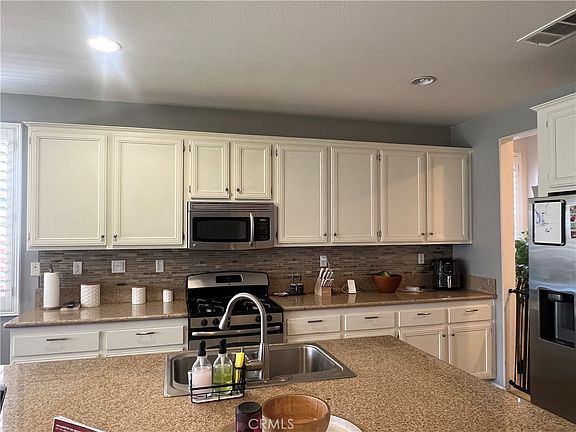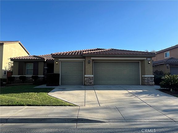 Turnkey Single Story Home 3 Bedroom 2 Bathroom, featuring a three-car garage. Primary bedroom has a large walk-in closet, kitchen with granite counter tops, stain steel appliances and a huge center island that opens up to the dining and living rooms creating a large open floor plan. The back yard is upgrade with vinyl covered patio with a ceiling fan. This property is close to Parks, Schools, Shopping Center, FWY 1-10, Cabazon Outlet Mall and Casino Morongo.