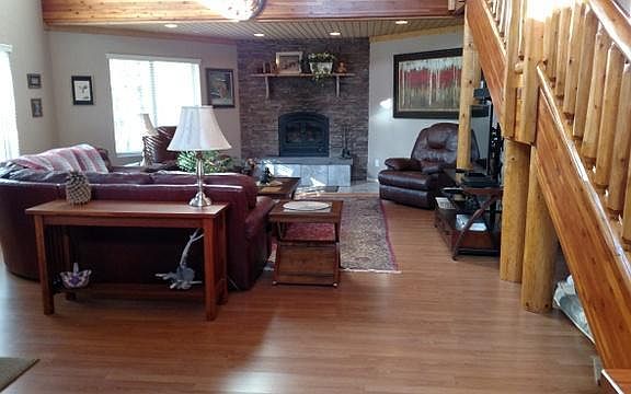 ARE YOU LOOKING FOR A CABIN IN THE WOODS WITH A SEPARATE DETACHED AREA THAT CAN BE USED AS AN APARTMENT FOR GUESTS OR YOUR IN-LAWS? THEN THIS IS IT. THE BEAUTIFUL LOG SIDED CABIN OFFERS VAULTED T&G CEILINGS PLUS A BRIGHT OPEN FLOOR PLAN AND A GEORGIOUS HIGH-END WOOD BURNING FIREPLACE THAT CAN HEAT THE ENTIRE CABIN. THE KITCHEN HAS CUSTOM CABINETS WITH PULL OUT SHELVING AND DRAWERS, A BREAKFAST BAR AND A WALK IN PANTRY. THERE IS ENOUGH SPACE IN THE OVERSIZED LAUNDRY ROOM TO SET UP A CRAFT AREA PLUS THERE IS A SEPARATE ENTRANCE OFF THE DECK. THE LARGE BEDROOM ON THE MAIN LEVEL HAS A WALK-IN CLOSET. UPSTAIRS YOU HAVE A BIG LOFT THAT CAN BE USED AS A 3RD BEDROOM, PLUS ANOTHER LARGE BEDROOM. THE GARAGE WAS ONCE USED AS A HOME AND CAN EASILY BE CONVERTED BACK ENTIRELY OR YOU CAN HAVE A