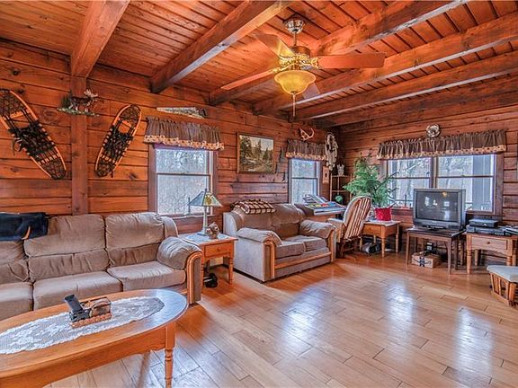 It's not every day that a log home comes on the market If this piques your interest, now is your chance to own this unique home, conveniently located with easy access to Woodbury, Bethlehem and Watertown. Enter from the front porch into the family room and immediately enjoy the view of the back yard through the sliding glass doors. You instantly feel the warmth of the log interior with wood floors and are drawn into the rest of the home. The Kitchen and Dining Room are one large space where the charm of the log home goes on. There is a large Living Room that spans front to back of the house with a fireplace that furthers the cozy atmosphere. Spend any part of three seasons on the screened-in porch which looks out onto the lovely front yard with a stone wall that runs the width of the property. Upstairs you will find the original, spacious Master Bedroom with great closets, a full bath with jetted tub and 2 more bedrooms. The current owners also created another Master Bedroom or what could be a Bonus Room, over the garage. There is ample closet space and vaulted ceilings. They are also including the large screen tv There is a 2 car garage with new doors and a great yard for your enjoyment. This is priced for a quick sale