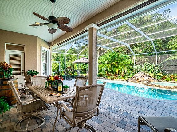 Welcome to Paradise in your Executive Home in the gated community of the Reserve at Oak Ridge. Conveniently located to shopping and dining this home also provides the privacy and feel of being out in the country. Sitting on over an acre of land with a conservation area to the rear this home offers an attached 3 car garage as well as a detached garage that is complete with a front porch and was custom designed to conform with the main house. You will love cooking in the luxurious kitchen that was carefully designed to provide an abundance of counter space and a proper work flow. Some of the Home's Extras Include: a Central Vacuum, Custom Designed Laundry Room with Built in Ironing Board, Crown Molding, Air Conditioning in The Garage, Surround Sound speakers in the Family Room, Master Bedroom, Back Patio & Front Porch. The Master Suite has a Tray Ceiling and Large Closets with Custom Cabinets in the bath. The kitchen, Laundry Room, Hall bath and Family Room all have custom cabinetry. The home has a water softener and deep well for irrigation. The homes water is public and there is no sewer fees as the property has a large septic system. You will enjoy the attention to detail found throughout the home and the property. The rear screened patio is paver with an in ground pool and spa with a beautiful rock waterfall feature. There is a gas hook up for your bar-b-que grill, spa and fireplace. The current owners are not using the gas service at the moment. The room measurements and front exposure are approximate and buyer should verify. Home is shown by appointment with a days notice please.