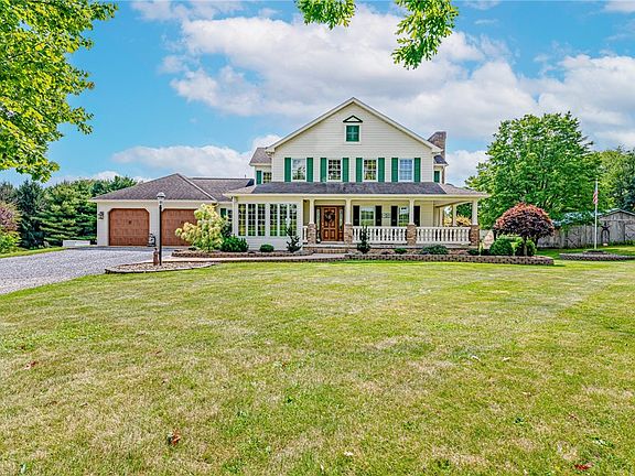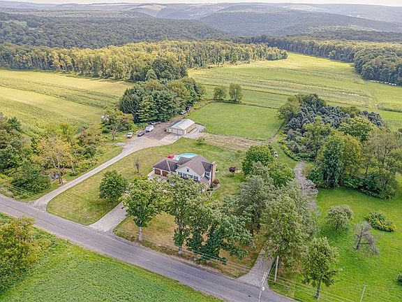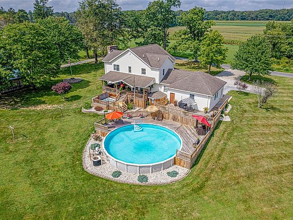 Discover this stunning 4-bed, 4-bath home in United School District w/ panoramic views! Nestled on 3 acres, it's an oasis of lush greenery, making it an ideal retreat from the hustle & bustle of everyday life. Inside, find a fully equipped kitchen w/ island, walk-in pantry, & main-level laundry. Enjoy ample space w/ a full basement, dining room, den, & the heart of the home-a cozy family room w/ a Brick FP. The master suite features a Brick FP, walk-in closet, & spa-like bath. The exquisite woodwork throughout adds character. Perfect for relaxing & unwinding, the exterior features a large covered back porch w/ step-down deck, with a hot tub & sparkling pool, outdoor bath, & firepit or enjoy the view from your relaxing covered front porch! For those w/ farming interests, there's also a barn & fenced area for animals. The attached & detached garages store all of your equipment, tools & toys. Live in your dream home, where peace & serenity meet luxurious living! ALL OGM rights convey