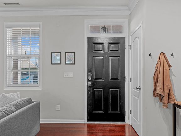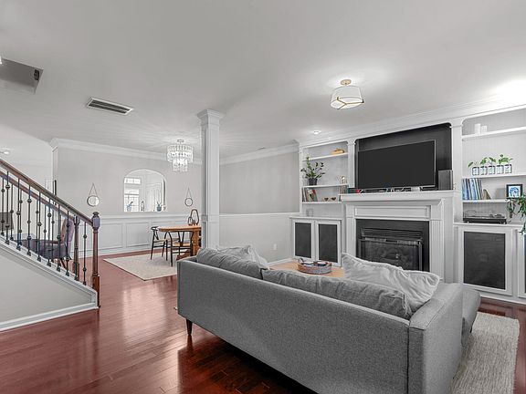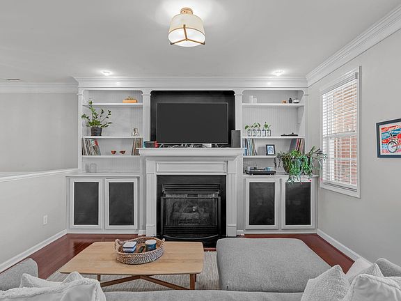 Stately and timeless, this brick-front townhouse in the sought-after Renaissance Park neighborhood offers the perfect blend of space, style, and convenience just minutes from Downtown Raleigh! Featuring charming double front porches, this home invites you to enjoy peaceful mornings or unwind after a busy day. The open and spacious floor plan has hardwood floors on the main level, a cozy living room with stunning built-in bookshelves and cabinets, and a separate dining area with elegant wainscoting and a show-stopping chandelier. The kitchen is a true showpiece—complete with stainless steel appliances, sleek quartz countertops, and a large island. But the real star? A custom quartz bar, featuring extra cabinets, open shelving, tons of storage, and a wine fridge, making it an entertainer's dream! Upstairs, the primary suite includes a walk-in closet and private access to the walk-out balcony. The spa-like primary bath features dual vanities, a soaking tub, and walk-in shower. A spacious secondary bedroom connects directly to the second full bath, while wide hallways make it feel like a single family home! Completely move-in ready with beautiful updates, neutral paint, and timeless touches like three-piece crown molding. Renaissance Park's amenities include a pool, tennis courts, playground, and even a fitness center—all within a picturesque community close to shopping, dining, and everything Raleigh has to offer!