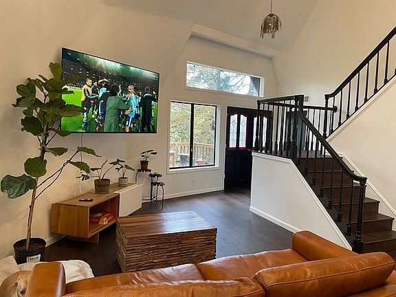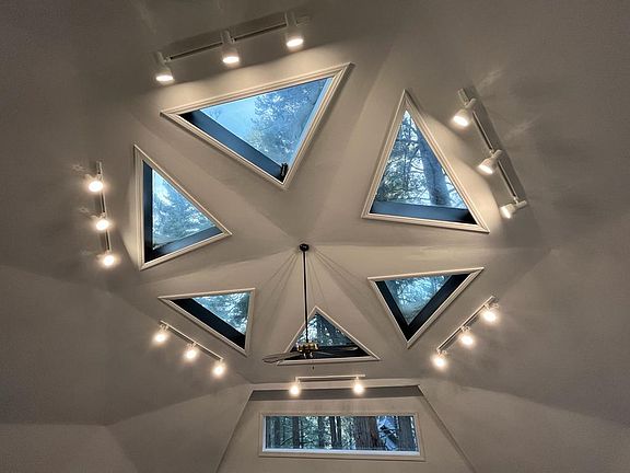 Unique geodesic, TURN-KEY cabin sitting on almost 1 acre perfectly situated between Lake Gregory & Lake Arrowhead. Fully furnished and ready to go. The cabin is an updated 4 bedroom / 3 bath sitting on over 3/4 acres on a private street. Open concept with a large family room with 2 sliding glass doors on main level, 2 large wrap around decks that will provide generous entertaining space for those BBQ's and special occasions. 3 car parking pad at street level and plenty more parking available on the driveway and 2 car garage. Kitchen has amazing views of the trees, lake and the High Desert too. A very large Den on lower level that can be a fantastic game room or hang out for the kids. Available ASAP with a discount for LA fire victims. Owner pays for water and trash . Renter is responsible for gas and electric.
