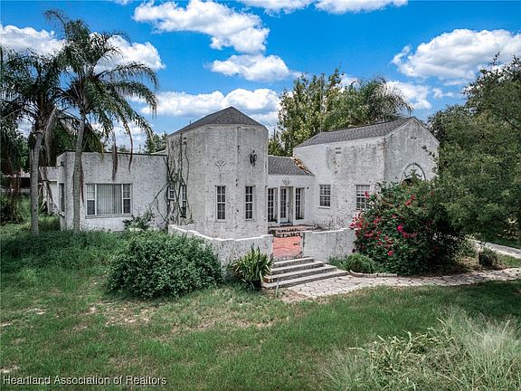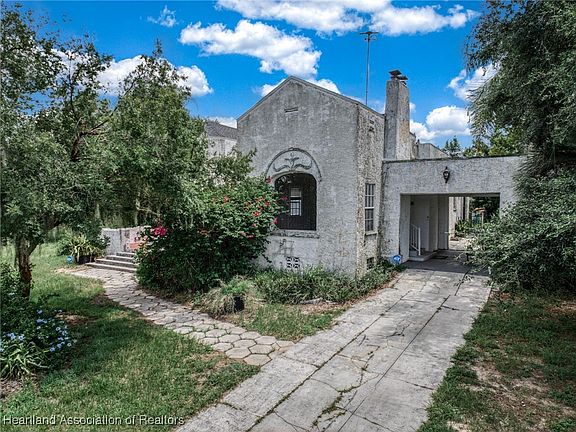 SELLER HAS ACCEPTED AN OFFER CONTRACT WITH A KICK-OUT CLAUSE IN PLACE. Travel back in time with this interesting, eye-catching property! Captivating Mediterranean style home presenting an impressive front yard view of picturesque Lake Lillian in Avon Park, FL! Built in 1926, this residence will provide the perfect homesite for the Early Florida History Enthusiast. 4 spacious bedrooms with a 2nd story loft (currently blocked off, previously accessible by stairway), basement, 2 full bathrooms with a 1/2 bathroom in the large detached concrete block garage, covered side carport, separated front living and family rooms, all boasting over 2,100 living square footage alone! Enter through the captivating entryway through the carport into the main living room adorned with authentic hard wood flooring and an epic front yard view of beautiful Lake Lillian. You will be amazed with how large the home is and all of the old world detailing throughout! Centrally located kitchen with stove, and refrigerator appliances included. The Property encompasses over half an acre of land with various ornate flowering trees throughout. Central HVAC system updated 2023. Central Water and Septic Tank utilities, HOA or Special District Fees do not apply to the residents of this neighborhood. TO BE SOLD AS IS, INSPECTIONS WELCOMED.