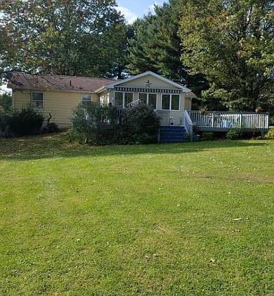 Enjoy one floor living ? 3 Bedrooms 2 Bath home. Features include a beautiful Sunroom addition with walk out access to a wraparound deck and views of an expansive back yard. Current owners installed gorgeous hardwood floors in main living areas and painted the walls with neutral colors. There is a wood burning fireplace in the living room, a spacious kitchen and dining area with French doors leading to the light filled Sunroom and deck. The lower level has parking for 2 cars and plenty of storage space. There is a large, detached shed for lawn equipment that will remain with the property. Septic System was inspected in October 2020 and passed. Shown by appointment only.
