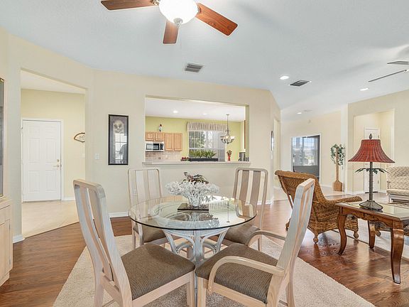 WHAT A VIEW! Beautiful golf course home in DEL WEBB SPRUCE CREEK GOLF & COUNTRY CLUB - located on #2 of Memorial. 2 bedrooms plus den. Golf cart garage. Upgraded stainless steel appliances. Laminate or tile in main living areas. Carpet in bedrooms. Double front doors with glass inserts. Enclosed lanai with added insulation. Double shower in master bath with upgraded frameless shower doors. High toilets and high cabinets. HVAC replaced 2014. AprilAire filter. Humidistat. Termite bond. Deep lot - big enough for a pool!