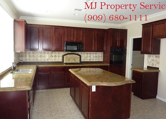 This beautiful Eastvale home has 5 bedrooms and 3.5 bathrooms, with a 3 car garage. One bedroom and bathroom downstairs. Master bedroom has a cozy fireplace, dual sinks, vanity, jacuzzi tub and separate shower. Formal living room with fireplace; formal dining room. Gourmet style kitchen features granite counter tops, decorative tile backsplash, large center island, gorgeous cherry wood cabinets, breakfast nook and appliances include stovetop, oven, microwave and dishwasher. Back yard with concrete patio, beautiful barbecue stone tile outdoor kitchen that includes grill, side burners, and sink outside. Also features a stone counter for seating. Monthly rent: $2,500.00 Deposit: $2,500.00 (Varies depending on credit) MJ Property Service is the exclusive authorized property management company for this property. We don?t take any money before you meet our rep or view the property. MJ Property Service is a professional property management company in Walnut, California. For more information please contact us at (909) 680-1111.