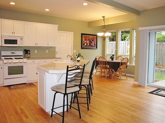 Lovely open concept floor plan on main with vaulted ceilings. Large living room with beautiful gas fireplace, spacious formal dining and windows galore to let the light in. Kitchen with island and dinette and laminate floors throughout.. Den on main level could be 4th bedroom. Big party room upstairs perfect for entertaining. Large corner lot, nice fenced backyard with covered patio and water fountain features with bamboo. Feels like a resort in our backyard.