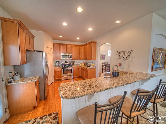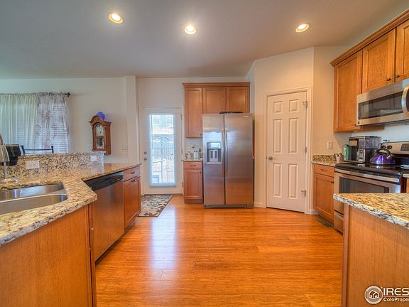 Fantastic two-story on lg. corner lot w/ 3 car garage & fully fenced yard. Enter to 9 ft ceilings, hrdwd floors & a formal dining rm. Eat-in kitchen w/ breakfast bar, s.s. appliances, granite cntrtps, corner pantry & dove-tail soft-close cabs. Upper level loft & Mstr suite w/ walk-in clst, 5 piece bth & ceiling fan. Bdrms 2 & 3 share a full bth & bdrm 2 has a walk-in clst. Unfinished bsmnt w/ rough-in & A/C. Just minutes to C470, I25, Orchard Mall, Golf & County Fairgrounds. SEE STREAMING VIDEO!
