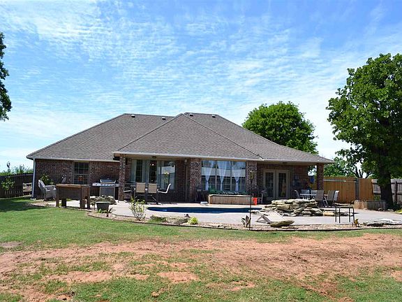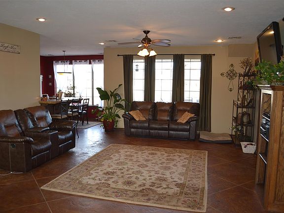 This lovely 2400 sq ft, 4 bedroom, 2 bath home has a lot to offer! Open floorplan with stained concrete floors, separate dining area, gas log fireplace & surround sound in the living area. Kitchen has concrete counters, stainless appliances & pantry. Privacy fenced backyard with 16 x 32 fiberglass pool with saltwater system, waterfall, pool cover & automatic cleaner. All pool supplies stay with home. Firepit & TV hookup on patio. 30 x 40 shop with concrete floor, overhead door, electricity, wood burning stove & window unit AC, 220 plug X 2 plus insulation. CHA with shop but not hooked up. 12 x 20 shed. Water softener & security system. Water heater recently replaced. New CHA unit installed April 2016