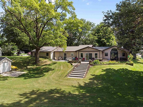 We are looking for offer! Welcome home to this fantastic ranch on Bonar Lake boasting over 120’ of frontage, pier that stays in year round & a large stamped concrete patio where you can enjoy sunset views from your hot tub (included)! Located in a peaceful & quiet area with zero through traffic & close enough to Syracuse that you can take a golf cart to restaurants, this 3 bedroom, 2 full bath home is nestled on a generous 0.54 acre lot with many tall trees offering shade & privacy. Built in 1962, it has been well maintained from outside in w/attractive exterior, detailed landscaping, highly durable metal roof, oversized paved driveway & 3 car garage w/ a wood working shop in 3rd stall & a safe room in case of severe weather. Inside you’ll find a warm & welcoming atmosphere complemented by wood flooring & a neutral color palette—the perfect backdrop to your own personal style! Sizable formal dining room great for entertaining gets plenty of natural light from big picture windows & links to cozy kitchen with abundant cabinetry, accent backsplash & pass-through window to main living area. Expansive great room is sure to please with scenic waterfront views & sliding glass doors to walk-out lakeside patio; tile floor means wet sandy feet are no problem. Impressive primary bedroom has cathedral ceiling with wood detail, jetted tub for ultimate relaxation & ensuite bath with walk-in shower—plus a true highlight, glass doors with stained glass transom window to private alcove containing hot tub with shelter so you can luxuriate in all kinds of weather. Remaining 2 bedrooms are both comfortably sized with ample storage throughout; main shared bath has updated modern vanity & tub/shower combo. Massive back patio extends almost entire length of house with lots of space for dining al fresco, sun bathing, or simply taking your time with a beverage of your choice & basking in the serene views. Sun in your eyes? Electric awning will provide shade! Grill stays & is connected to natural gas w/a new shed close to the water for all your tools & toys. Bonar Lake is a no wake lake, excellent for fishing, swimming (in middle) & kayaking in zen-like setting. 5 min drive to Syracuse takes you past Maxwelton Golf Club & straight to the heart of downtown with many local favorites & waterfront dining on both Syracuse Lake & Lake Wawasee. Are you ready for lake life all year round? Don't let this one slip away—reach out today!