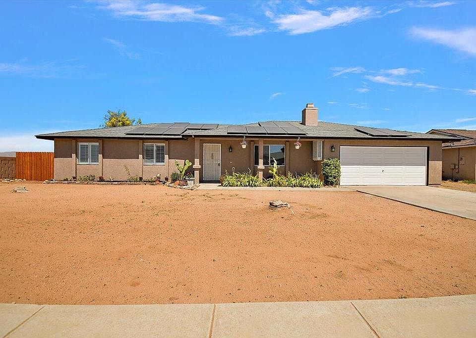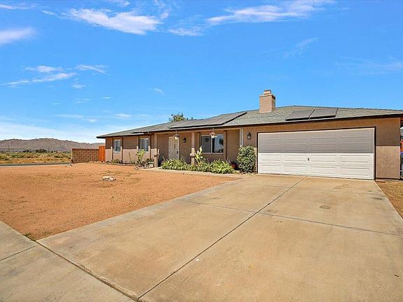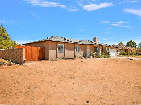 Your desert hideaway awaits. This clean home sits on an amazing over 17,000 square foot lot in a quiet Apple Valley neighborhood. Three bedroom, two bath over 1,300 square foot home. Large living room with an updated kitchen featuring corian counters, plenty of cabinet space, butchers block and stainless appliances. Spacious master bedroom with large closet. Updated bathroom with glass shower and stylish vanity. Freshly painted inside and out! Solar and RV parking. Reverse osmosis water softener. Outside spotless car wash spigot with purified water, only two years old. Swamp cooler in garage. Separate laundry room and storage shed.