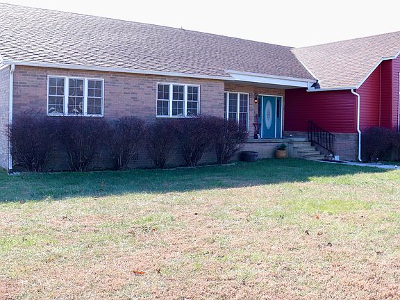 Look at this spacious ranch style home in the country! When you pull up to this brick clad and burgundy beauty, you will park on the large, horseshoe style asphalt driveway. A brief walk through the front door and you are greeted with a large dining room that opens to the living room and kitchen. Joining the three areas is a wall with a large cut out window for decorations or food platters. After a long day the theatre room is perfect for playing a game of pool or relaxing with guests. To the east of the home are the three bedrooms. The master has doors to the back and lots of closet space in the bathroom. The other bedrooms are just a walk down the hall and near the guest bathroom. A large mud room is located near the garage with a laundry room and half bath. As you walk to the backyard,