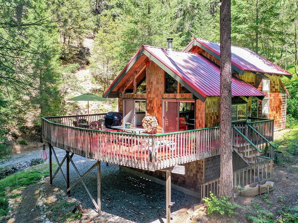 Come enjoy the exceptional natural beauty of the town of Washington! Beautiful cedar shingle sided house and gorgeous property, all just minutes from the spectacular Yuba River. Approximately one hour from skiing and other winter sports. Many high mountain lakes, fishing, kayaking, rafting, hiking trails and outdoor motorsports nearby. Exquisite pride of ownership shows in this lovely home, it has been impeccably maintained for years. Main level has a nice open floorplan that opens to a large deck that is perfect for outdoor enjoyment and entertaining. Great views off the deck. One bedroom and bath on main level. Upstairs has a very roomy and comfortable bedroom and bath. Lower level has a great entertaining room, it but could easily be used for additional bedrooms. Half bath and utility room on lower level as well.This tranquil setting is a joy to see and enjoy! The full acre has been cleared for defensible space and has a beautiful quartz-lined walking path and bench in the backyard.