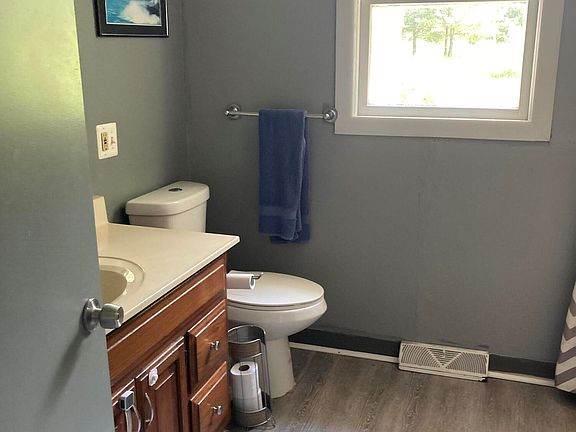 This wonderful starter home is on a paved road and sits on 1.51 acres. There are generous sized rooms with newer vinyl/laminate flooring in several of them. There is an attractive ceramic enclosure in the extra-roomy shower. Additional heat from the pellet stove and furnace, plumbing under the home and a well pump all done in 2013, the sump pump was done in 2017. The garage has additional storage off of the back. This makes a great year-round home or getaway!