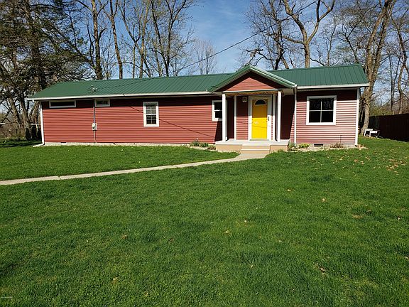 Great location on the St. Joseph River. This home has been totally remodeled and offer's a metal roof, vinyl siding, replacement windows, updated kitchen, bath & flooring, pex plumbing, Heat Pump LPG furnace & central air & new 5'' well Open concept Living room, dining room and kitchen w/appliances , 2 bedrooms and 1 full bath with hook up for stack unit washer and dryer. Very nice covered deck on the back w/ceiling fan & hook up for hot tub overlooking the river. Oversized 1 car detached garage w/storage or workshop area. Good size yard. Stairs & dock w/electric at Riverfront. Seller reserves the Hot tub, electric fireplace in LR & storage sheds.