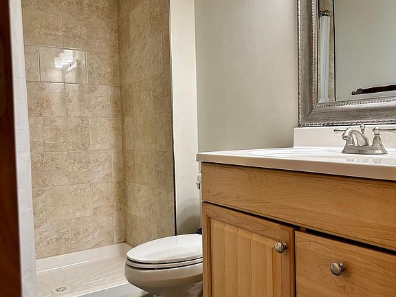 Upper level has spacious living room and large master bedroom with walk-in closet and direct access to the bathroom as well as a 2nd bedroom. Lower level features tile floors, fireplace, 2 bedrooms, 3/4 bath and sliding glass door to the patio and fire pit. Seller is a licensed real estate agent.