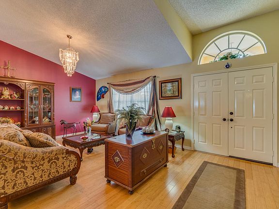 This stunning 3BR POOL home boasts pride of ownership. A beautiful double door entry invites guests to a formal living and dining room with awesome view of pool. Bamboo and tile flooring throughout. Note the upgrades to include new designer fans, light fixtures, custom window treatments, and surround sound system. Living Room, Family room, kitchen and Master BR open onto striking pool area. Gleaming diamond brite finish and self cleaning, oversized pool, completely screened. Large lanai. Home is private, easy to maintain white vinyl fencing. Master suite has dual sinks, Garden tub, separate shower and his and her closets. Split plan. Enjoy cooking and entertaining in well designed kitchen with wood cabinets, stainless steel appliances, bar allowing seating. New A/C 2/2017. Roof 2008.