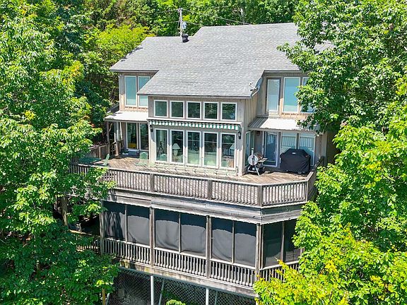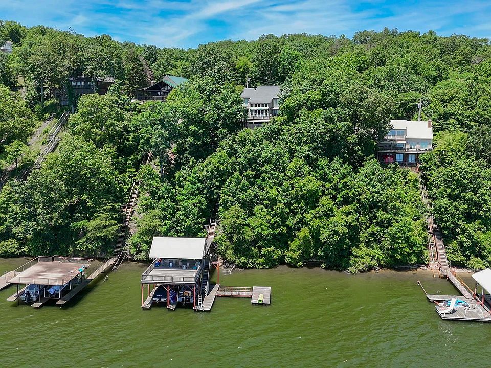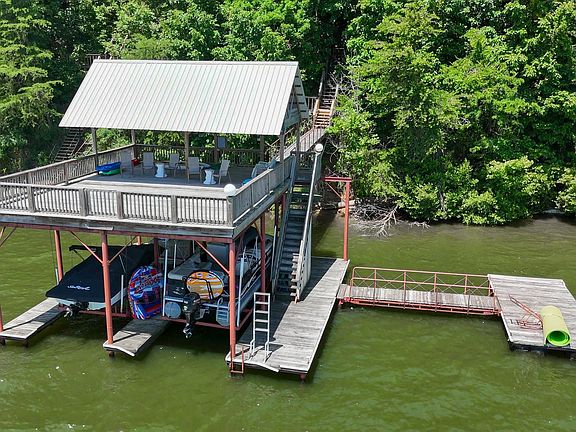 Semi private waterfront has Breathtaking Waterviews and large covered boat dock with boat lifts, floating dock, pwc lifts and sundeck. Home has 6BR, 6BA, open living and kitchen area, twin primary bedrooms, screened porch, plenty of deck entertaining space, tram and steps down to boat dock on Pickwick Lake at Bear Creek.