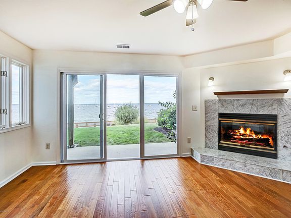 Sensational Sunrises, Seductive Sunsets! This first level, 2-bedroom, 2-bath condo features an open floor plan with direct access to the bayfront lawn terrace and spectacular panoramic views of Keyport Harbor, Raritan Bay, and NYC skyline! The many amenities include a fabulous master suite, gas fireplace, wood laminate flooring, new wall-to-wall carpeting, freshly painted walls, sliding glass doors to a private covered patio, attached 1-car garage and mooring rights in harbor. Conveniently located, easy access to buses, trains & ferries to NYC, as well as major roadways. Close to the new downtown waterfront, schools, parks, marinas, shopping, dining, and, of course, the fabulous Jersey Shore beaches. No dogs. The buyer must occupy the unit for at least two years before renting.