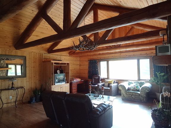 Beautiful log home on 3.28 acres! .885 shares of irrigation water. Flat usable acreage.