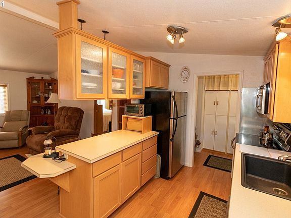 Well cared for 3 bed/2 bath 960 sq ft home w/appx 200 sq ft fully finished heated sunroom with 4 skylights, ceiling fan & door to outside w/pocket door off master suite. Roof appx 7 yrs. Completely updated kitchen and appliances; new laminate living & kitchen areas. Master on opposite ends for privacy. All windows replaced w/vinyl double pane. Wheel chair ramp entry. Garage is for 2 small cars, back end was walled off for laundry rm, storage, 1/4 bath and pantry. Painted apx 3 yrs.