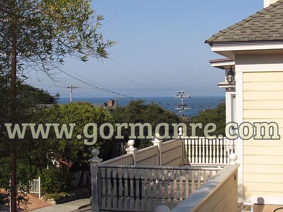 Very clean and spacious 1 bedroom, 1 bathroom triplex apartment near downtown Pacific Grove and New Monterey. This unit has approximately 900 square feet of living area on one level once you enter the unit, which is on the second story of the building. It has just been recarpeted and painted, so it is super clean, and it has newer vinyl double paned windows. The living room is spacious and features a wood-burning fireplace and access to a small deck that features a modest bay view. The kitchen is large and includes lots of cabinets, a large breakfast bar and a couple of pantry cabinets. Kitchen appliances include a refrigerator, a self-cleaning electric range/oven, a dishwasher, and a built-in microwave. The bedroom features its own bathroom with lots of closets and a shower stall. This unit has central heating. Below this unit is a three-car garage and this unit has the space to the right as you look at the building from the street. It has a garage door opener and there is free use of the laundry equipment in the garage. Rent includes water, garbage, basic gardening and sewer. No smoke/pets. Available immediately. Prior resident lived in this unit for nine years; owner would like a long-term tenant.