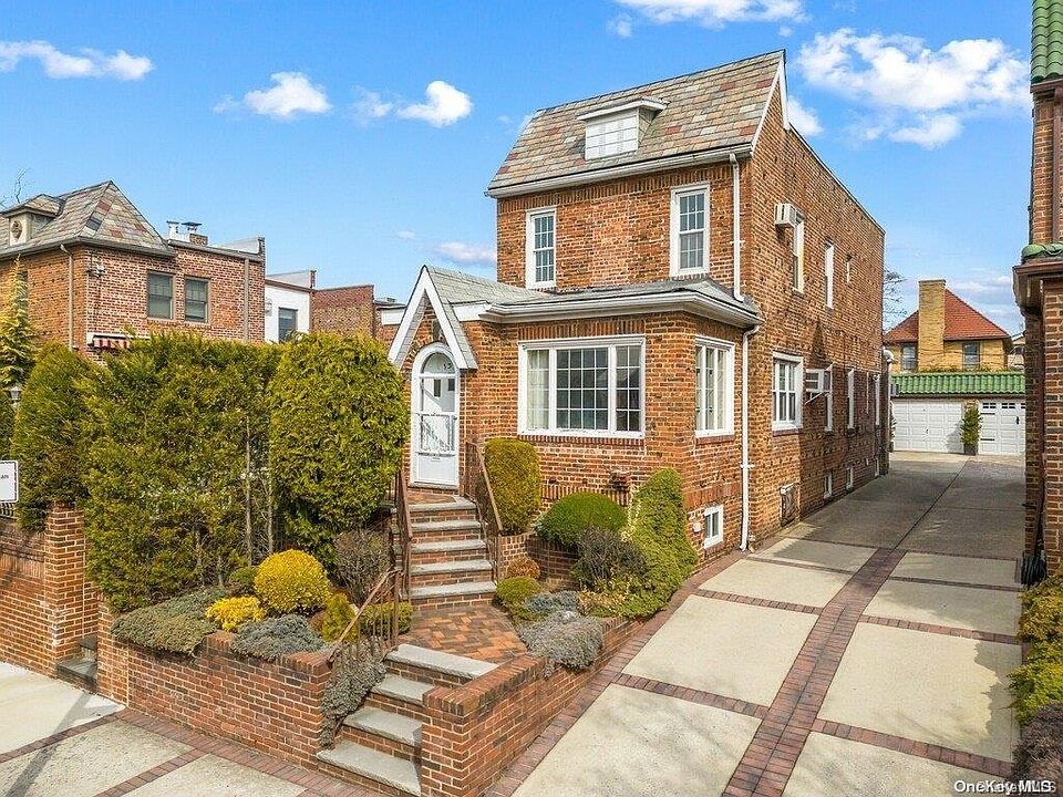 Beautiful Bay Ridge, and a true beauty that epitomizes all that Bay Ridge has to offer. Brick, Fully Detached, Private Garage, Spacious Driveway, Manicured Front Garden, Rear Deck, and Rear Garden. This three-bedroom, one-and-a-half bath with lower-level recreation space is perched on the edge of Bay Ridge's most exclusive section, Crescent Hill, which was settled by the most prominent families, including The Van Brunts, in the first half of the 20th Century. This home overlooks the Terracotta barrel-style roofs that distinguish most of the properties of this serene, leafy enclave. Filled with light and South-facing, you are welcomed into the classic c1930s home and drawn in by the charm. Part of that charm is an open feeling typical of the period. You enter through the arched doorway into the small front hall that opens to a double living room, a formal dining room with a center stair, and a rear-facing, eat-in kitchen. The kitchen, bright and North facing, overlooks a deck, perfect for morning coffee, and the rear garden. Upstairs, the front-facing primary bedroom, with views of the Verrazano Narrows Bridge, has an abundance of natural light. On this level, two more bedrooms and a full windowed bath. Each bedroom feels private, as they are separated by a long hall. Perhaps, the most fun of all, the lower-level retro recreation space is the perfect spot for movie nights, entertaining, or an enormous home office. This level also offers additional storage, laundry, and access to your rear garden.