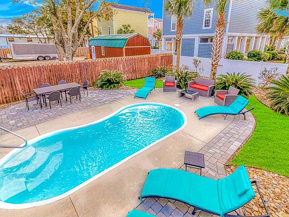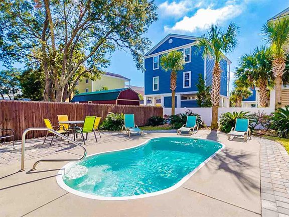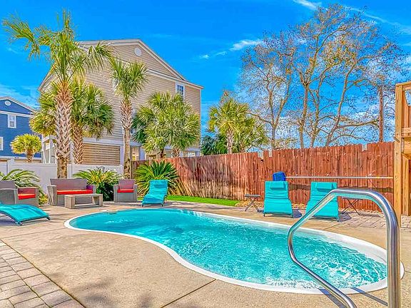 Located just a half block from the beach in Garden City, this 5-bedroom, 4.5-bathroom home has been well maintained and is in excellent condition! Strong vacation rental income producer. Private pool, fully furnished, new HVAC, interior and exterior freshly painted, new furniture added, all bathrooms just updated with new toilets and plumbing fixtures, LVT plank flooring recently added. The fenced backyard is an inviting lush oasis showcasing the private pool with stone paver accent decking and river rock landscaped tropical shrub beds. Unlike most semi-detached homes in Garden City, this property is NOT in an HPR (horizontal property regime), and has it's own deeded lot. Also, with over 2600 heated sf, this home is much larger and newer than all of the most recently sold semi-detached comps. Featuring a custom hand-painted tropical mural for guests to have the perfect photo op to document their memorable vacation at this awesome beach home. Tastefully furnished and decorated with a fun coastal theme. This turnkey property won't last long!