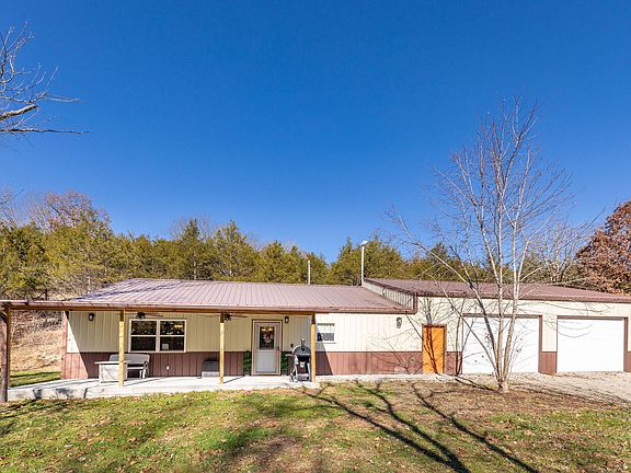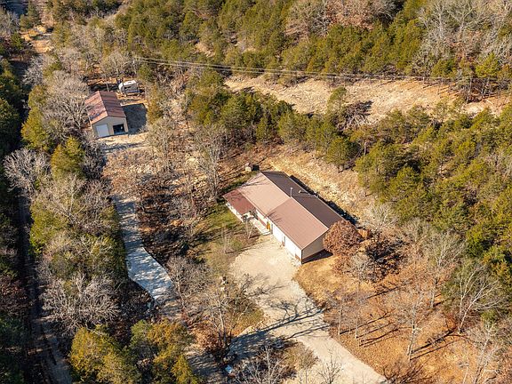 House on LAND, with a massive amount of storage and shop space. Located only 10 minutes to downtown Branson, 15 minutes to Tablerock Lake, and just 5 minutes to Hwy 65. This 3 bedroom, 2 baths, 1600 sq ft stick-built home with metal siding, sits on 6 acres of secluded serenity. Enjoy sitting on the front porch overlooking the wet weather stream, that has water in it almost year around. This house built in 2015, features one level of open living space, with a heat pump, energy-efficient spray foam insulation, and a pellet stove. Bring all your toys, tractors, and project cars to enjoy the 30X60 Shop with 12 ft RV door, and an attached 1600 sq ft garage/shop.