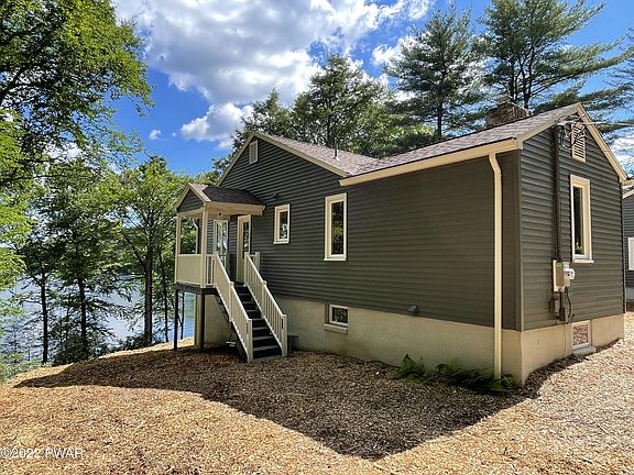 Completely remodeled Lake Wallenpaupack Lakefront with 314' of frontage in a quiet cove. No community, do dues and short term rentals are allowed. House has vaulted ceilings with all the good Lake House vibes. Includes two car garage, large patio overlooking the lake and a large lot leaves room to expand. Dock is included and a mooring buoy is also allowed. Realtor owned., Beds Description: Primary1st, Beds Description: 2+BedL, Baths: 1 Bath Level L, Baths: 2 Bath Lev 1, Eating Area: Dining Area, Eating Area: Semi-Modern KT, Beds Description: 2+Bed1st