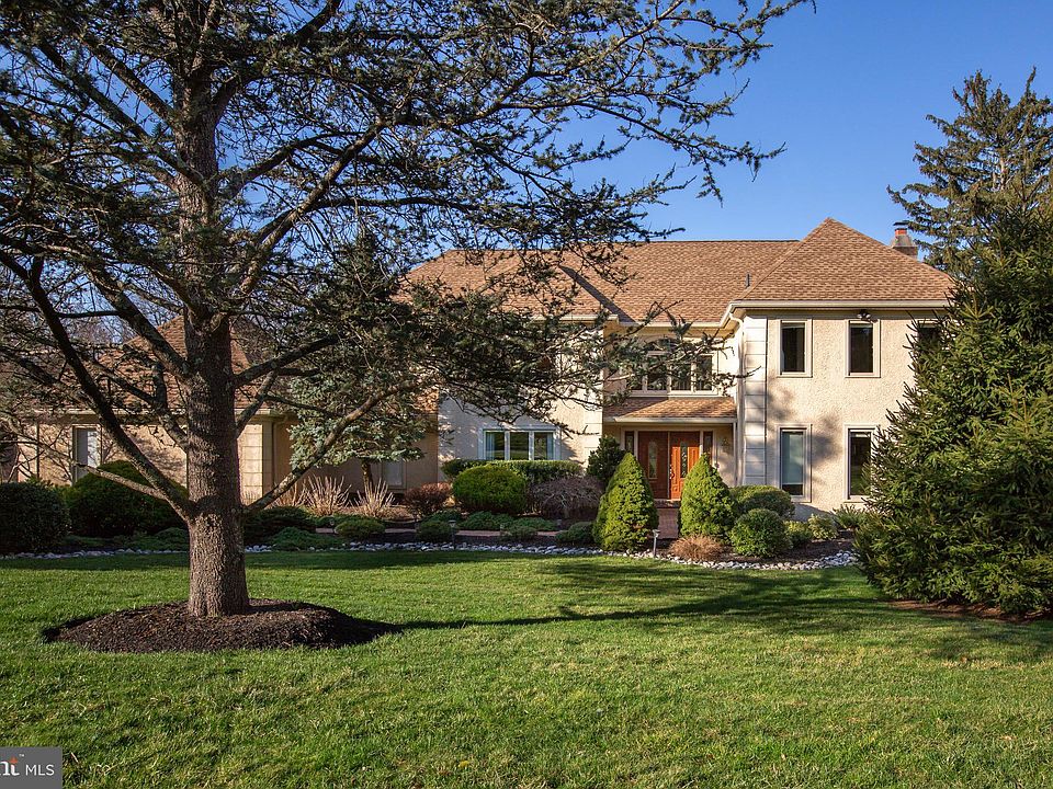 Welcome to this beautiful home tucked away on a private road in Haverford, offering a perfect blend of comfort and functionality. Step inside the inviting two-story foyer with a lovely curved staircase, setting the tone for the tasteful elegance that awaits. Natural light from the abundance of windows throughout the main floor creates a warm and inviting atmosphere. Around the corner from the foyer, you will find a convenient coat closet, powder room and a home office with built-ins. A large living room with a fireplace leads seamlessly into the family room of the kitchen. The family room also features a fireplace as well as a wall of windows overlooking the backyard and pool. Step through into the spacious kitchen with stainless steel appliances, lots of cabinets and counter space, and a center island, ideal for culinary enthusiasts. A sunny breakfast room with skylights is ideal for casual meals, while the adjacent formal dining room offers a space for more sophisticated gatherings. Upstairs, the main bedroom suite awaits with a cozy sitting area illuminated by skylights, providing a serene retreat. The main bathroom features a luxurious soaking tub, perfect for unwinding after a long day, as well as a large walk-in shower. There are three additional bedrooms with two hall bathrooms each having a vanity sink and tub/shower combination. Outside, you'll find a deck overlooking the peaceful surroundings and pool, perfect for outdoor dining and entertaining. Convenient storage is available in the attached two-car garage and full, unfinished lower level. Located close to shopping, dining and all the Main Line has to offer. Enjoy an easy commute via major routes or train service to Center City.