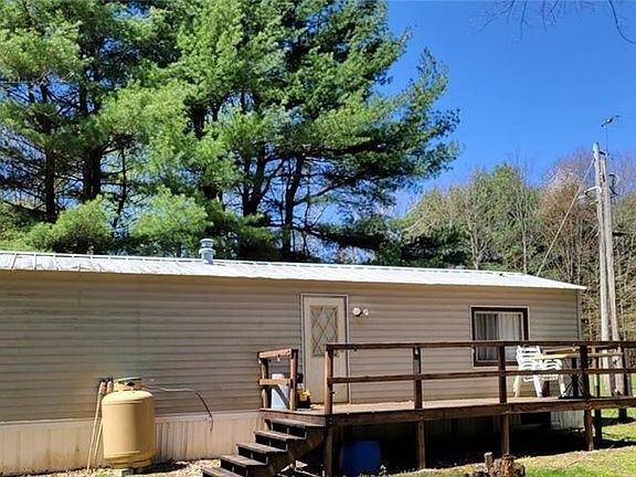 Turnkey 1985 mobile home on 1.97 acres! Very nice condition, beautiful level lot, partially wooded. Tucked away next to State Gamelands "74" on a dead end dirt lane. Just a couple of miles from Millcreek Boat Launch access to Clarion River! Lots of work was done: new plumbing, siding, floors, 20x10 cov'd front deck, 20x10 rear deck, updated electric, wall air conditioner,, etc. 100 amp in home, 200 amp on pole, septic, well, propane heat. 20'x30' cement slab (garage needs torn down) would be perfect to pull up an RV ! Owner used as a camp/cottage. Home is well insulated (plumbing is not insulated) 20 min drive to Cooks Forest using the back way. All furniture, tv, appliances, washer dryer, riding lawn mower, etc are included! One large bedroom, 1 small bedroom w/bunk beds, lg bathroom w/tub shower. Metal roof 10 years appx Plenty of room to add on !!.