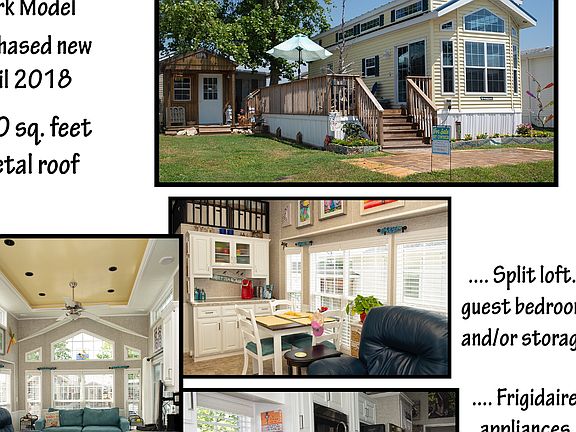 Woodland Park Model 2017; new in April 2018. 400 sq. Feet plus a double loft. Ideal for guest bedroom. The home is located in Waterway RV Park in Cedar Point NC located on Bogue Sound with marina and boat ramps. Nice deck 300 sq. ft and an 8 x 8 storage building with porch. Both have metal roofs.