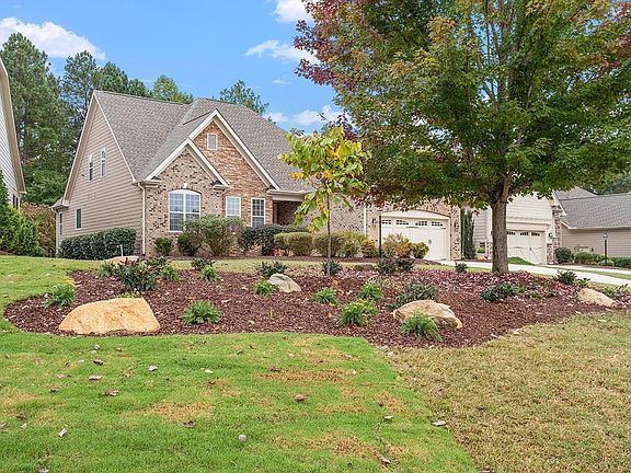 GORGEOUS Ranch-Style (1.5 story) patio home in golf course community of Chapel Ridge. This lovely home sits on a large lot, offering plenty of privacy and touts a magical garden with flowering butterfly bushes, hardwoods, blueberry bushes, a fenced yard and an infinity view into a peaceful meadow that leads to the area's many amenities. The open floor plan, with cathedral ceilings & ample great room offers lots of light & beautiful views. Its convenient main floor living boasts a downstairs owners' suite, office, guest room, screened patio & deck for indoor/outdoor living. This home has been meticulously maintained and has a new HVAC & Roof. HOA maintained yard. Don't miss this opportunity on this turnkey home in the highly sought after area of the patio homes in Chapel Ridge.