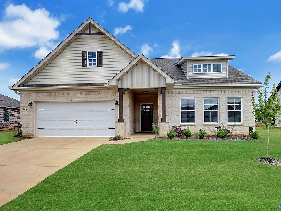 MOVE IN READY- This beautiful 3bd 2ba home is a MUST SEE. Brick exterior, quoin accents, address stone, low maintenance vinyl trim, 6" stained cedar column w/corbels and brick bases on covered porch. Architectural shingles with LIMITED LIFETIME WARRANTY, aluminum fascia/gutters, 8' ceilings, ceramic tile bathrooms, trey ceilings, granite countertops in kitchen and bathrooms, tile backsplash, castle stacked 36" upper recessed panel cabinetry w/crown molding top trim and soft close cabinets with knobs/handles, WIFI smartphone ready garage door openers with smartphone app. 10 year structural warranty and so much more.