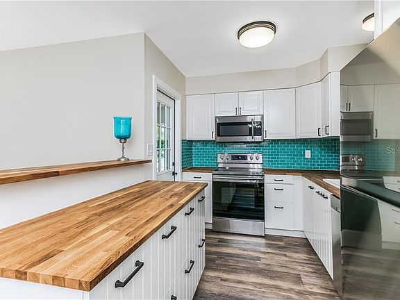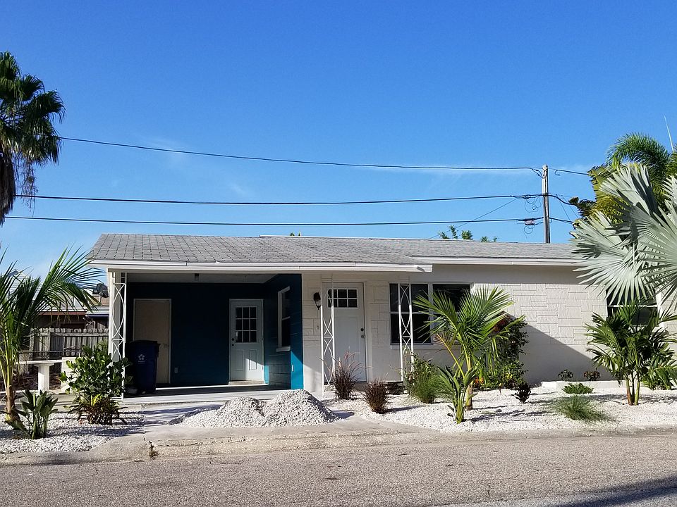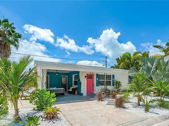 One or more photo(s) has been virtually staged. COMPLETELY REMODELED BLOCK HOME on Sunset Beach - All New: HVAC, Waterproof Vinyl Flooring, Kitchen, Bathroom, Landscaping with automated Drip System on Reclaimed Water, etc. You will love the creative touches on the new Tiki Bar, Cabana Doors and Shutters by local artist Gabriela Valencia. We don't see homes as pristine as this one just a block from the beach, with beach access just down this beautiful street come on the market often! Schedule a private showing today.