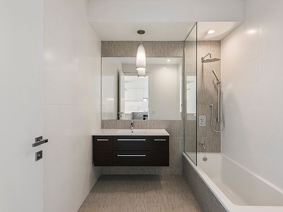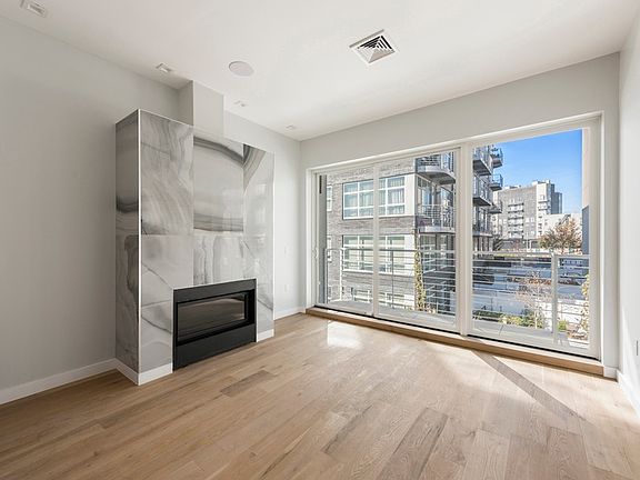 A brand new condo situated a block away from McCarren Park, this contemporary 1-bedroom, 1-bathroom home blends modern fixtures and finishes with private outdoor space. Features of this 656 sq. ft. home include gorgeous hardwood floors, huge windows, an open plan layout, an in-unit washer/dryer, and a charming balcony. The home flows directly into a bright, open-concept living room, dining room, and kitchen. The living room boasts a gas fireplace and leads out onto the balcony, while the kitchen is equipped with Nolte Kitchen cabinets, cultured stone countertops, an Olympia Alabastri Di Rex backsplash, and a suite of high-end stainless steel appliances. The bedroom sits adjacent to the living room and possesses a large reach-in closet and easy access to the home's full bathroom. Nestled at the convergence of Greenpoint and Williamsburg, 135 Bayard is a boutique condominium brought to life by leading real estate development firm, M Development. The building is surrounded by a number of trendy restaurants, bars, cafes, and shops, particularly those that line Manhattan and Graham Avenues. Nearby subway lines include the G and L. Storage units are available in the basement.